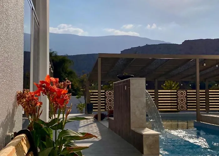 The 4-bedroom La Vida Inn Dibab villa features a terrace with views of the sea as well as a private swimming pool.
